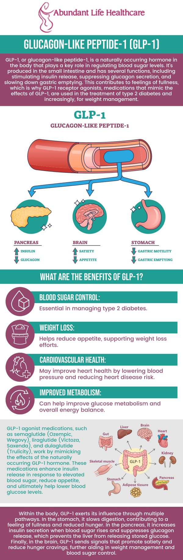 GLP-1 medications closely imitate the body’s natural hormone, GLP-1, known for its critical role in blood sugar regulation. By stimulating insulin secretion after meals, these medications help patients with type 2 diabetes maintain healthier blood glucose levels. At Abundant Life Healthcare, we incorporate these innovative medications into individualized treatment plans to support our diabetic patients in achieving optimal health outcomes.